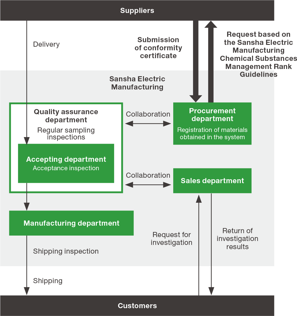 | Tracking and updating information | We obtain safety data sheets (SDS) to update information regularly and take appropriate measures when relevant laws have been revised. We establish a system for responding immediately to new information and regulatory requirements at engineering department and manufacturing sites. |